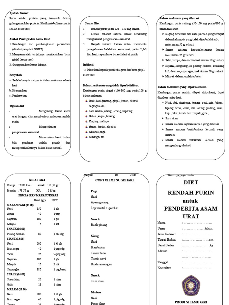 Diet asam urat ( rendah purin ) apakah yang dimaksud purin. Asam urat (uric acid) adalah zat kimia yang dibuat saat tubuh memecah purin. Penting juga dalam menyembuhkan penyakit asam urat yaitu dengan melakukan diet asam urat. Cara mengobati asam urat dengan cepat secara alami dapat dilakukan dengan bahan bahan alami.